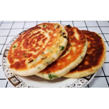 葱油饼(英文名:Shallot pancake)是北方地区特色小吃的一种,属闽菜或鲁菜菜系。主要用料为面粉和葱花,口味香咸。中国福建,山东威海、东北地区、河北等地都有该小吃分布,是街头、夜市的常见食品。发面葱油饼,用发面和葱花以及一些香料做成的葱油饼,外面一层金黄金黄的皮吃起来油香脆爽,里面的发面饼芯蓬松柔软,咸香可口,还有那葱花散发出来的香气,咬上一口,口腔里一下子就香气四溢起来!