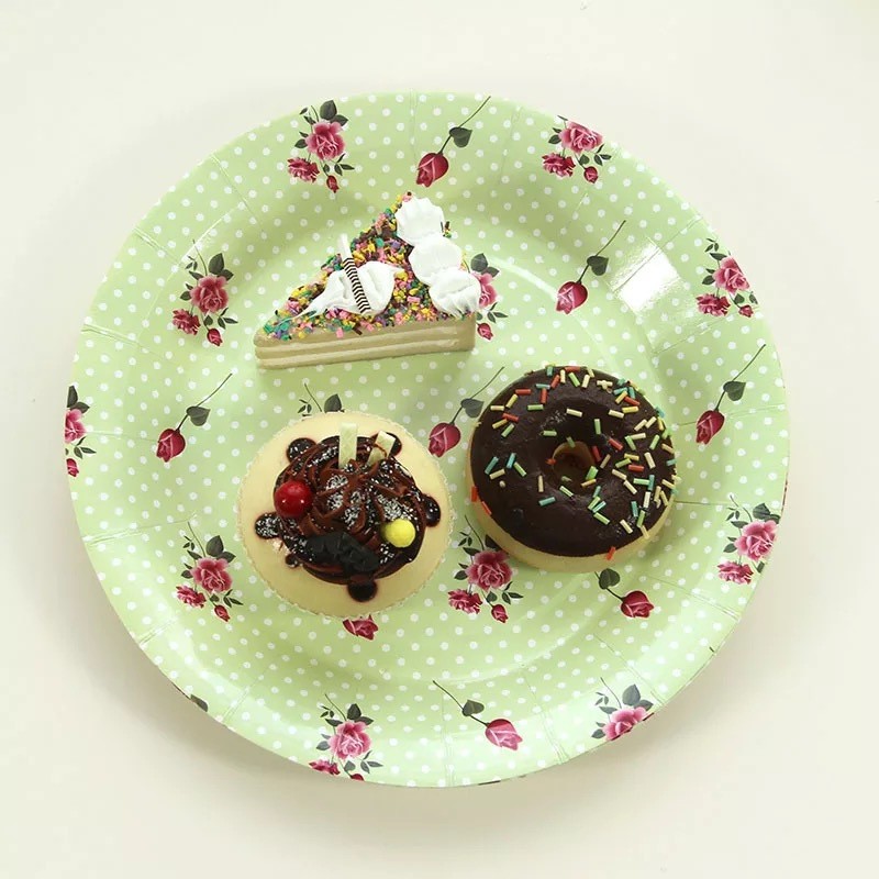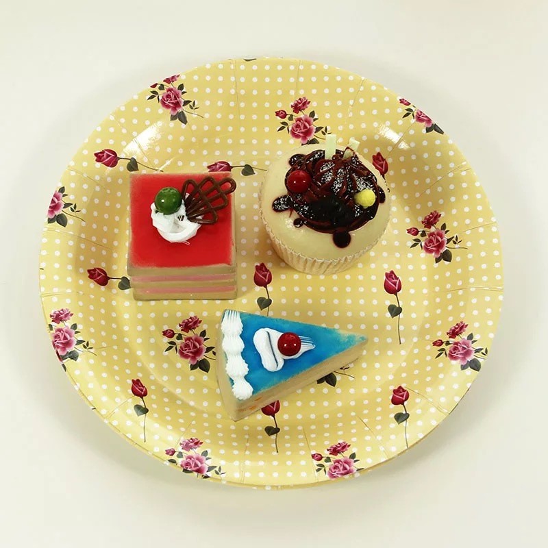 碎花一次性圓形派對彩色紙碟 食品包裝蛋糕紙質紙盤